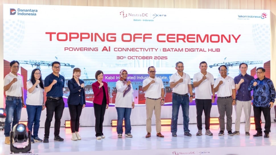 Suara.com - PT Teknologi Data Infrastruktur (NeutraDC Nxera Batam), anak usaha PT Telkom Indonesia (Persero) Tbk melalui anak usahanya, PT Telkom Data Ekosistem (NeutraDC), menggelar Topping Off Ceremony “Powering AI Connectivity: Batam Digital Hub” sebagai penanda pencapaian penting pembangunan Hyperscale Data Center NeutraDC Nxera Batam di kawasan industri Kabil, Batam, Kamis, 30 Oktober 2025.
