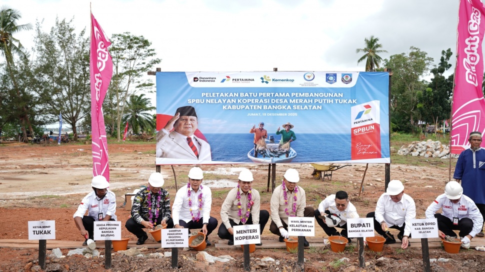 Suara.com - Pemerintah menegaskan komitmennya menghadirkan keadilan ekonomi hingga ke wilayah pesisir melalui pembangunan Stasiun Pengisian Bahan Bakar Umum Nelayan (SPBUN) yang dikelola koperasi desa. Hal ini ditandai dengan peletakan batu pertama pembangunan SPBUN Nelayan di Desa Tukak Sadai, Kabupaten Bangka Selatan, Provinsi Kepulauan Bangka Belitung.