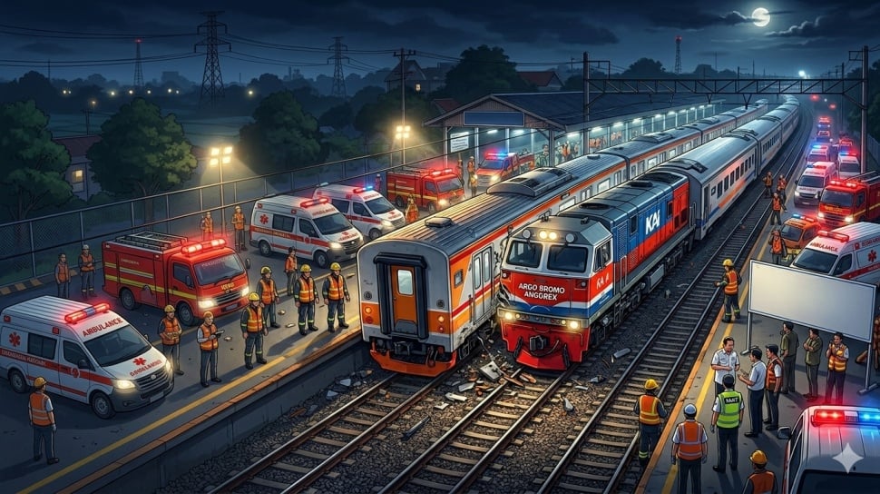 Suara.com - Senin malam, 27 April 2026, menjadi catatan kelam bagi transportasi nasional. Di tengah hiruk-pikuk Stasiun Bekasi Timur, sebuah tabrakan beruntun yang melibatkan KRL Commuter Line dan Kereta Api (KA) Jarak Jauh Argo Bromo Anggrek mengakibatkan 14 nyawa melayang dan 84 orang luka-luka.