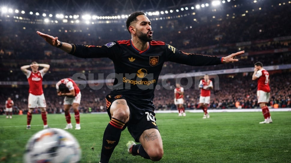 - Manchester United menaklukkan Arsenal 3-2 di Emirates Stadium pada Senin dinihari WIB, dengan gol penentu oleh Matheus Cunha.