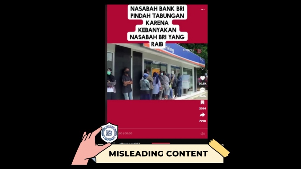 Unggahan dengan narasi “nasabah BRI Cianjur antri pindah tabungan akibat uang raib pada 2025” merupakan konten yang menyesatkan (misleading content). Faktanya, video tersebut adalah rekaman lama dari tahun 2021, dan kejadian yang ditampilkan adalah kasus skimming yang telah ditangani oleh BRI.