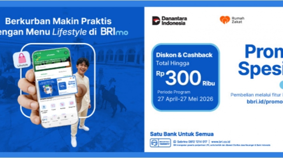 Bekerja sama dengan Rumah Zakat, BRI meluncurkan program spesial bertajuk "BRI-Qurban". Melalui fitur Lifestyle di BRImo, Anda kini bisa menunaikan ibadah qurban hanya dalam beberapa sentuhan layar.