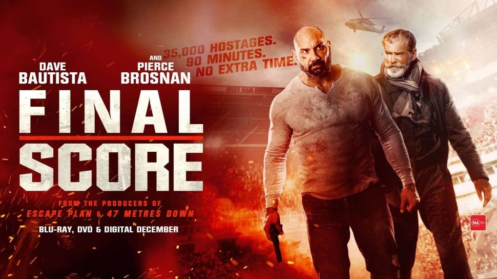Namun, dalam film Final Score yang dirilis pada 2018, sutradara Scott Mann berhasil menyuntikkan adrenalin baru ke dalam kiasan klasik tersebut dengan latar belakang yang sangat unik: sebuah stadion sepak bola yang penuh sesak di London.