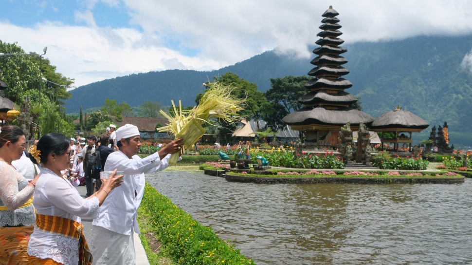 Suara.com - Umat Hindu menggelar prosesi upacara danu kerthi atau ritual memuliakan sumber air tawar di kawasan Danau Beratan, Desa Candikuning, Tabanan, Bali, Sabtu (1/11/2025).