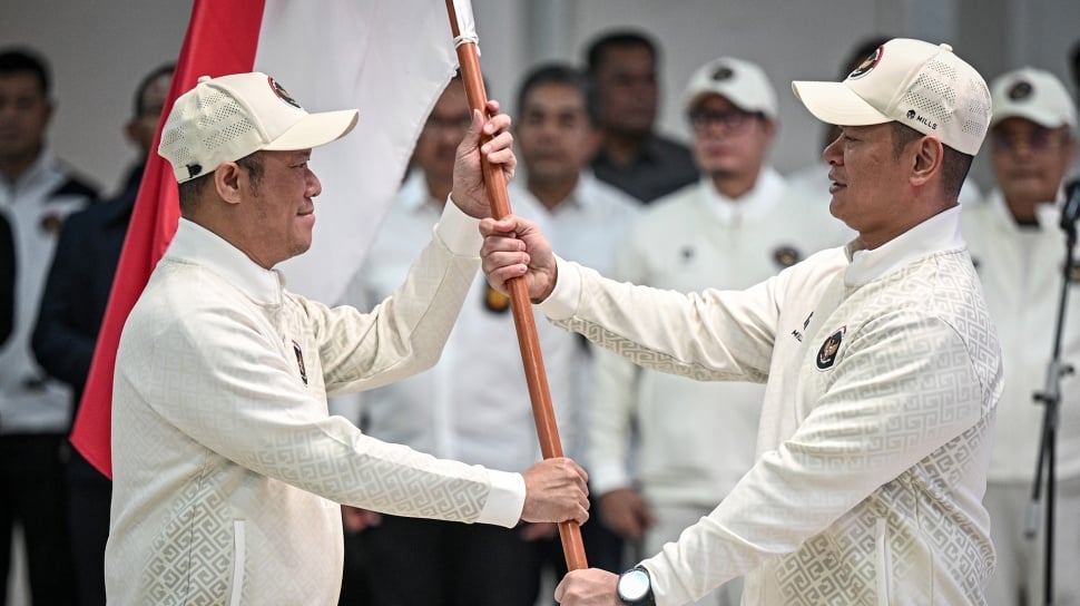 Suara.com - Ketua Umum Komite Olimpiade Indonesia (NOC Indonesia) Raja Sapta Oktohari (kanan) secara simbolik menyerahkan bendera merah putih kepada CdM Kontingen Indonesia untuk SEA Games 2025 Bayu Priawan Djokosoetono (kiri) saat upacara pengukuhan tim Indonesia untuk SEA Games 2025 di Kantor Kemenpora, Jakarta, Jumat (5/12/2025).