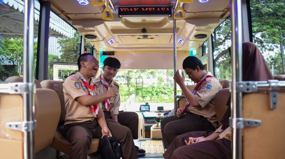Suara.com - Empat siswa penyandang disabilitas menaiki bus sekolah ramah disabilitas saat peluncuran armada tersebut di Pendopo Balai Kota, Jakarta, Rabu (21/1/2026).
