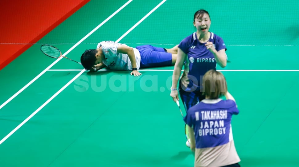 Suara.com - Pebulu tangkis ganda putri Indonesia, Siti Fadia Ramadanti terjatuh saat bertanding melawan ganda putri Jepang Arisa Iragashi/Miyu Takahashi pada babak perempat final Daihatsu Indonesia Masters 2026 di Istora Senayan, Jakarta, Jumat (23/1/2026).