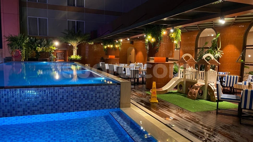 - Hotel ini menyediakan fasilitas lengkap termasuk restoran, kolam renang air hangat, dan ruang pertemuan serbaguna.