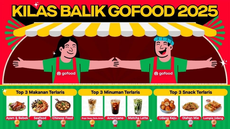 Suara.com - Tahun ini, GoFood kembali merilis “Kilas Balik GoFood 2025” yang merangkum selera kuliner orang Indonesia sepanjang tahun. Didasarkan dari data pesanan pelanggan, laporan ini menggambarkan preferensi pelanggan yang lebih berani eksplor menu minuman baru dan cenderung mengandalkan menu andalan untuk pilihan makanan.
