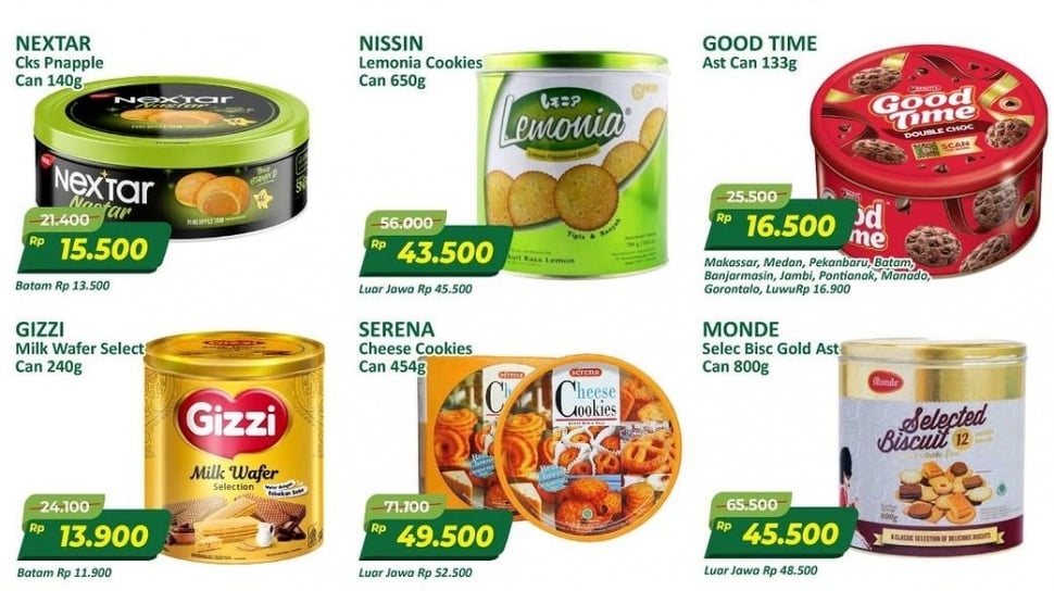 - Promo mencakup sirup mulai Rp8 ribuan dan aneka kue kaleng untuk suguhan Lebaran.