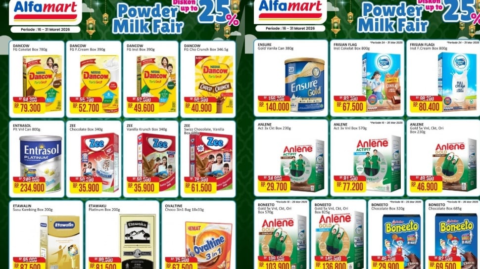 - Alfamart kembali menggelar Powder Milk Fair dengan potongan harga hingga 25%.