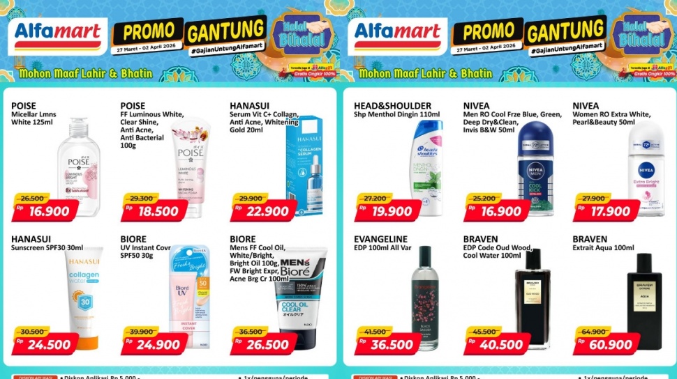 Sejak 27 Maret 2026 hingga hari ini, Kamis, 2 April 2026, Alfamart menghadirkan promo menarik untuk produk skincare, bodycare, dan parfum. Tidak hanya itu, dalam tajuk promo yang sama, sejumlah produk kebutuhan rumah tangga juga mendapat potongan harga.