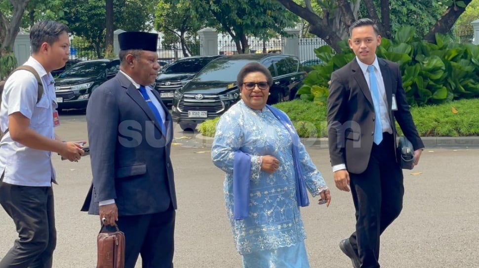 Pantauan Suara.com, Riba bersama suami tiba di kompleks Istana Kepresidenan pukul 12.57 WIB.