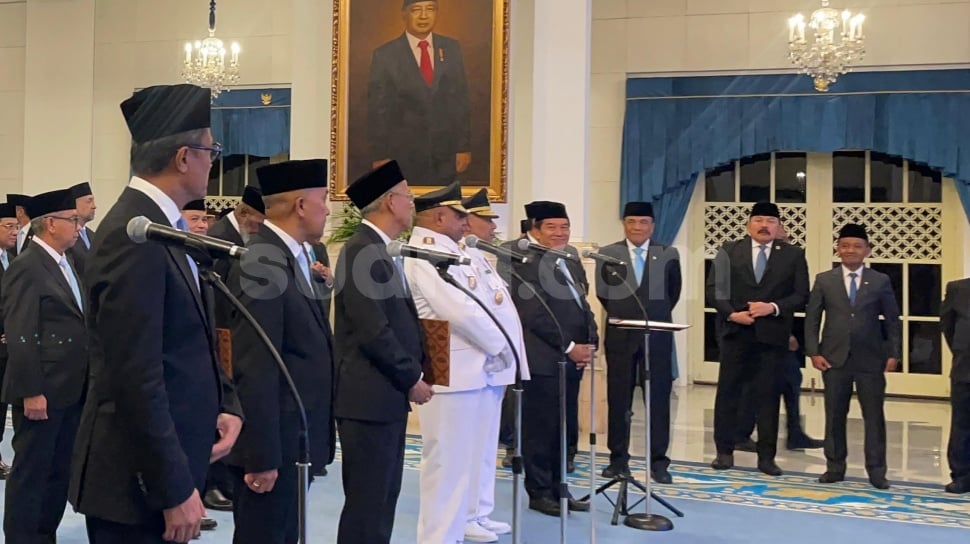 "Bahwa saya akan memenuhi kewajiban saya sebegai gubernur, sebagai wakil gubernur dengan sebaik baiknya dan sedil adlnya. serta berbakti kepada masyarakat nusa dan bangsa," ucap Mathius dan Aryoko mengikuti ucapan presiden, Rabu (8/10/2025).