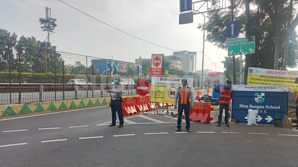 Dalam unggahan tersebut, terlihat petugas berjaga di lokasi dengan papan penutupan jalan yang menutup sebagian ruas.