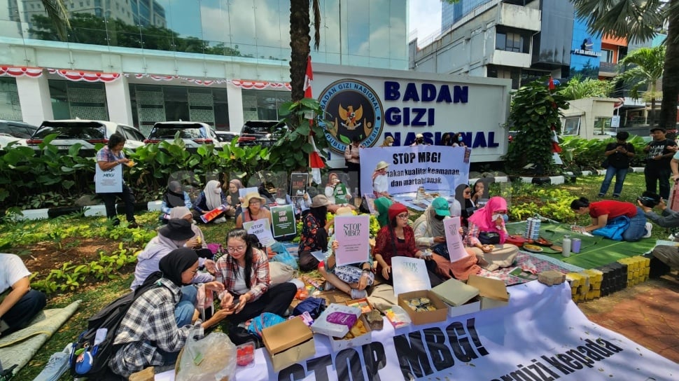 - Sekelompok massa dari gerakan Suara Ibu Indonesia menggelar aksi menolak program Makan Bergizi Gratis (MBG) di depan Kantor Badan Gizi Nasional.