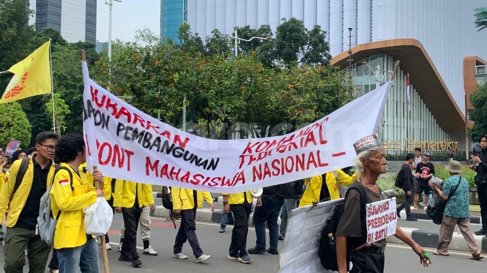 - Salah satu perwakilan mahasiswa menyebut pemerintahan Prabowo–Gibran telah gagal mewujudkan kesejahteraan rakyat.