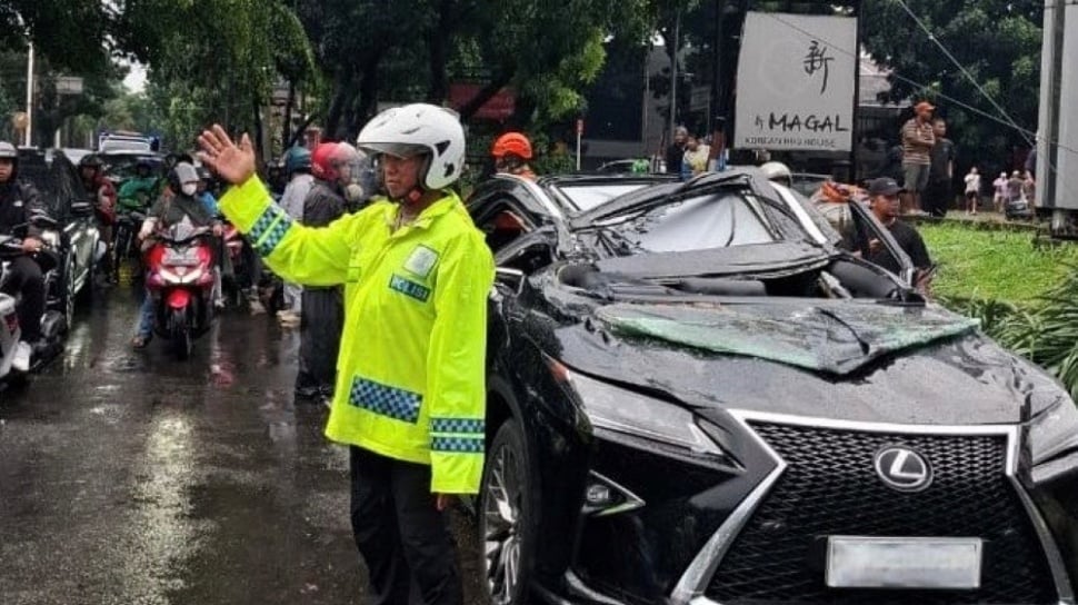 - Seorang pria tewas setelah mobil Toyota Lexus yang dikendarainya tertimpa pohon tumbang di Jalan Metro Pondok Indah Raya.
