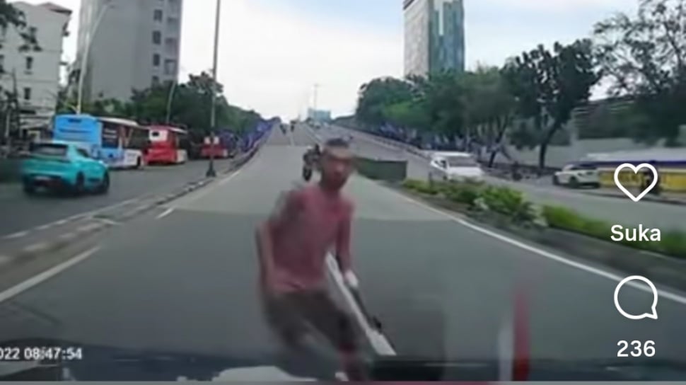 Sebelumnya, video kejadian ini sempat viral di media sosial dan menimbulkan dugaan adanya modus penipuan. Dalam rekaman tersebut, terlihat seorang pria berkaus merah berlari ke arah mobil yang melintas, lalu menjatuhkan diri seolah-olah tertabrak.