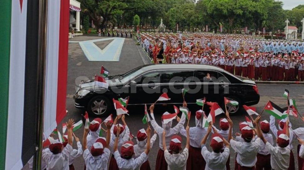 Suara.com - Momen hangat terjadi saat upacara penyambutan Raja Kerajaan Yordania, Raja Abdullah II ibn La Hussein, di Indonesia.