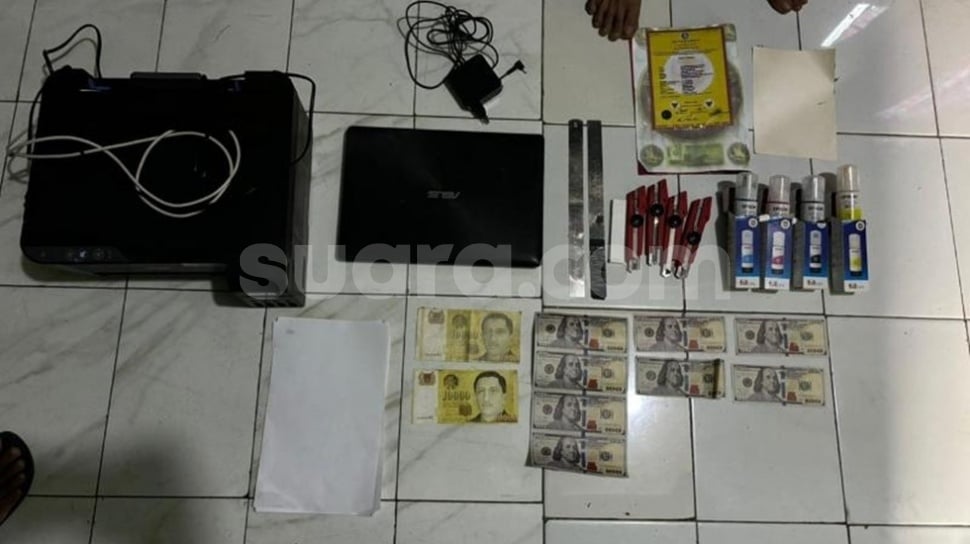 Polisi juga menyita barang bukti lain berupa tas, telepon genggam, laptop, printer, tinta printer, serta peralatan yang digunakan untuk mencetak uang palsu.