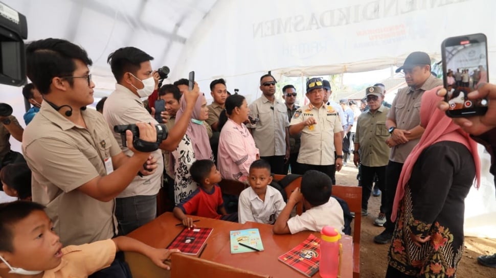 “Sekarang masih belajar di tenda, Pak. Karena ruang kelas masih dalam proses pembersihan dan perbaikan,” ujar Ramiannum.