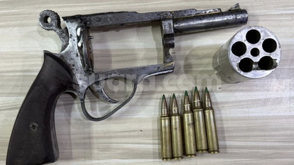 - Polisi menyita senjata api rakitan dan amunisi aktif sebagai barang bukti dari komplotan pelaku.