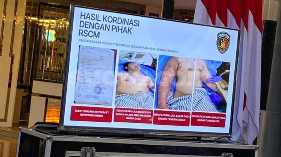 Luka tersebut terdapat pada area wajah, dada, kedua tangan, serta beberapa bagian tubuh lainnya.