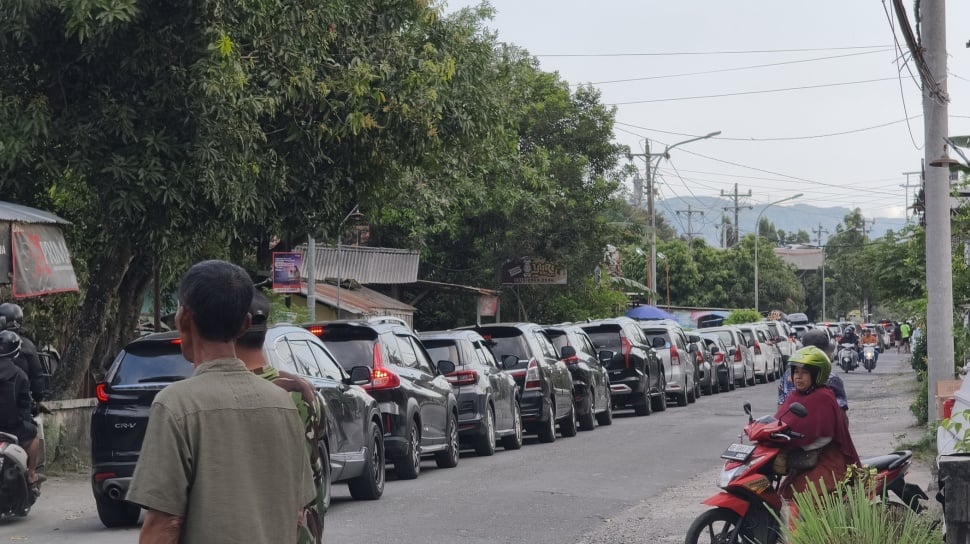 Pantauan Suara.com di lapangan menunjukkan antrean di jalan nasional sudah mengular beberapa ratus meter dari pintu masuk tol Purwomartani.