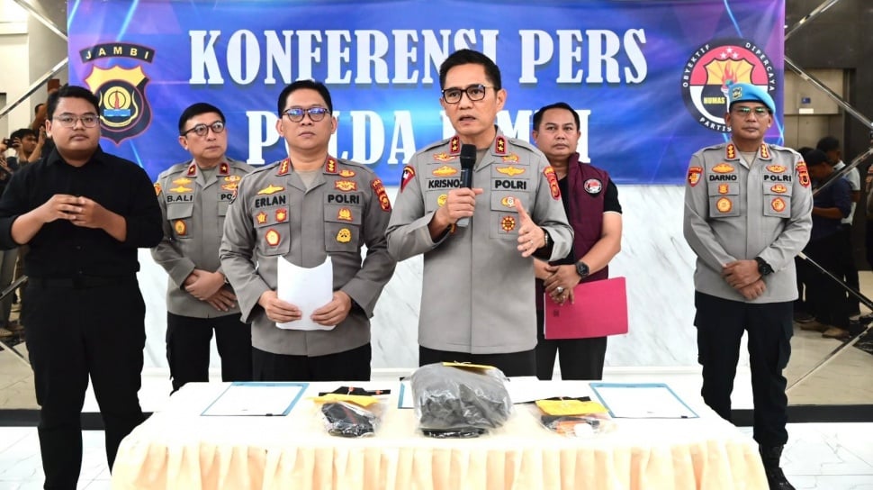 - Polisi turut mengamankan lima rekan tersangka beserta sejumlah barang bukti untuk menjalani pemeriksaan intensif di Mapolda Jambi.