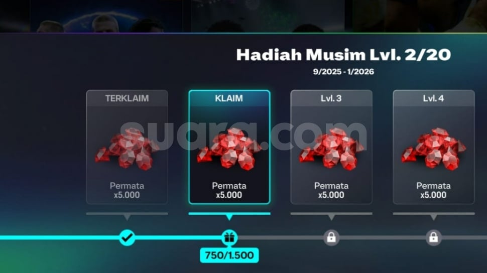 - Misi Lencana (10.000 Gems): Ini adalah tambang terbesar. Masuk ke `Lencana > Hadiah`, lalu selesaikan semua misi di level 1 dan level 2. Total 10.000 Gems akan menjadi milik Anda.
