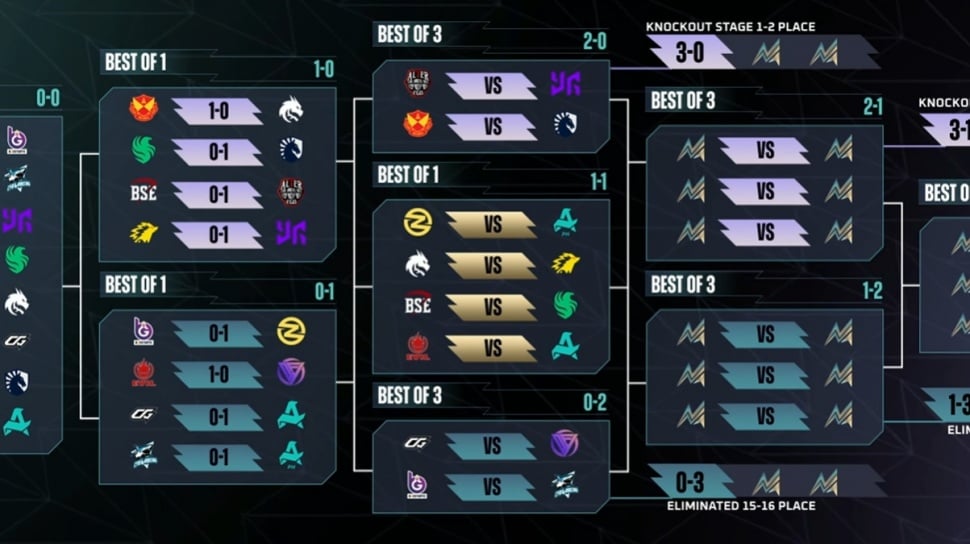 Fase Swiss Stage menyuguhkan persaingan ketat bagi 16 tim peserta melalui total lima putaran pertandingan.