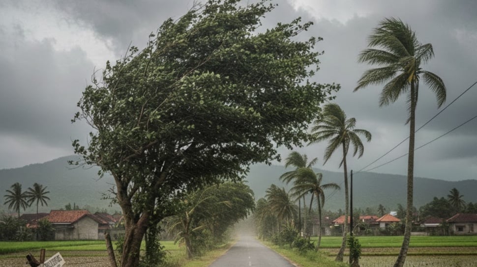 Ilustrasi angin kencang. (Gemini AI)