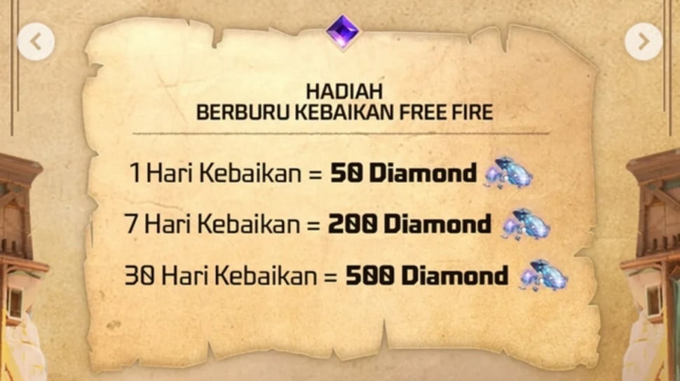 Tak berhenti di situ, ada kompetisi "Berburu Berkah Free Fire" yang menawarkan hadiah Diamond gratis.