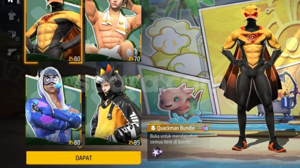 Sementara itu, bundle skin Quackman juga tersedia di Luck Royale melalui menu "Bundle Superhero Bebek", dengan jaminan hadiah setelah melakukan delapan kali spin.