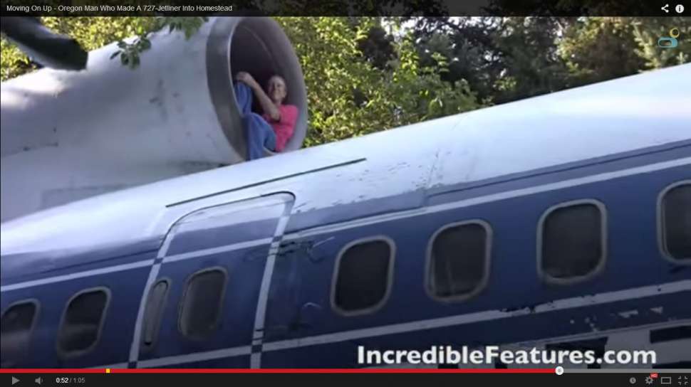 Tapi, Bruce tidak dapat menempatkan rumah pesawatnya di dalam kompleks perumahan. Sehingga, dia memutuskan untuk pindah ke dalam hutan Oregon dan tinggal di dalam rumah pesawat. (Elite Daily/ Incredilefeatures/ Youtube)