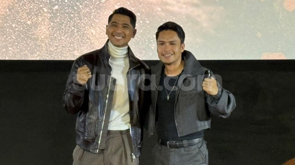 Dalam konferensi pers di kawasan Kebayoran Lama, Jakarta Selatan, Kamis, 8 Januari 2026, Arya Saloka memperlihatkan akting berantemnya dengan Randy Pangalila.